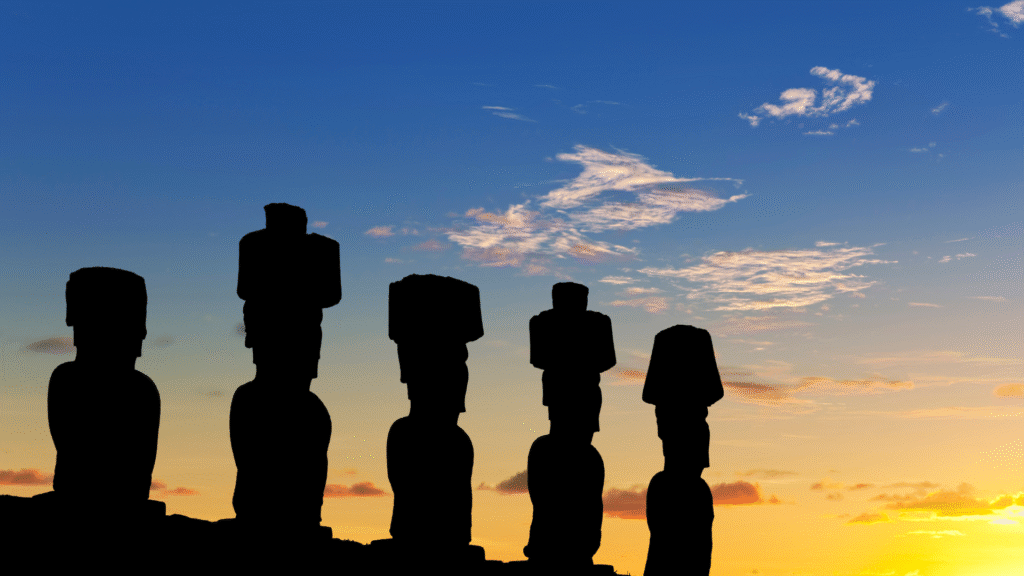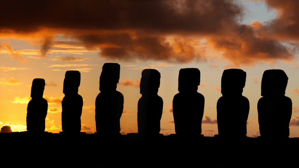 Déjate deslumbrar por el amanecer en Tongariki, una espectacular vista de la salida del sol desde el majestuoso monumento megalítico Ahu Tongariki.