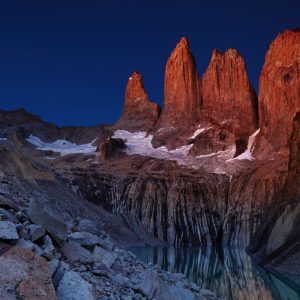 Luego de una breve parada, continuaremos nuestro camino hasta el próximo mirador, a 700 m de altitud. A partir de aquí, el sendero aumenta su pendiente. Media hora más tarde, alcanzaremos la Base Las Torres por el extremo este de la laguna, desde donde tendremos una espectacular vista de las tres torres (Central, Monzino y Dagostini) y de los cerros Peineta y Nido de Cóndores, si las condiciones de nubosidad lo permiten. Con esta vista, tendremos tiempo para descansar. Retornaremos por el mismo sendero, hasta llegar al punto de partida, desde donde tomaremos el vehículo que nos llevará de regreso a Puerto Natales.